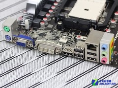 主板的磁盘接口部分,带有4个SATA 2.0接口,以满足多磁盘用户的扩展需求。背板接口方面,则提供了1组PS/2键鼠接口,4个USB 2.0接口,1组HDMI/DVI/VGA视频输出接口,1个标准的高速网络接口,以及1组音频接口。