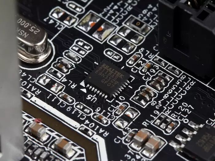 采用高端Gamer-Chip音频芯片,信噪比达115dB,搭配特选Gamer-Cap音频电容,并采用了滤坝数模分割线和EMI防干扰音频盖,降低干扰,信号更清晰,更保真。