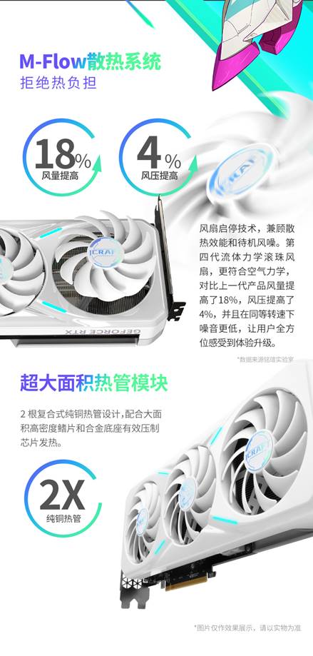 散热方面,该显卡配备了三风扇与优化的超大面积散热模块,确保散热稳定性,风扇启停技术兼顾散热效能和待机风噪;第四代流体力学滚珠风扇更符合空气力学,对比上一代产品风量提高 18%,风压提高 4%,且同等转速下噪音更低,让玩家专注于《天国:拯救2》的中世纪氛围中,不受噪音干扰。接口方面,显卡提供3个DP接口与1个HDMI接口,适配主流电竞显示器,550W以上电源即可支持运行,进一步降低了入门门槛。